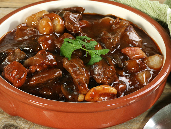 ハーブ類、にんにくを赤ワインソースに煮込んでいます。